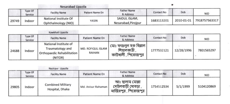 নাজিরপুর উপজেলা স্বাস্থ্য কমপ্লেক্সের উপসহকারী কমিউনিটি মেডিকেল অফিসার পবিত্র হালদার জানান, ঘটনা সত্য গত ১৬ জুলাই আনিসুর রহমান এবং তার বড় ভাই ও মোটরসাইকেলের ড্রাইভার নাজিরপুর স্বাস্থ্য কমপ্লেক্সের জরুরি বিভাগে ভর্তি হয়েছিল, যা আমাদের এই বুক রেজিস্টারে লিপিবদ্ধ আছে।
